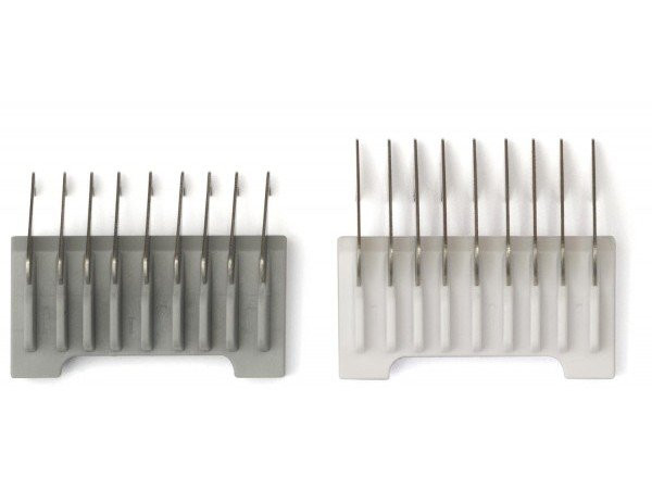 Set obsahuje hřebeny v velikosti 1,5 mm a 4,5 mm, což zajišťuje širokou škálu možností pro úpravu vlasů a vousů. Hřebeny jsou také odlišené barevně, což umožňuje snadnou identifikaci velikosti a usnadňuje výběr správného hřebene pro danou úpravu.