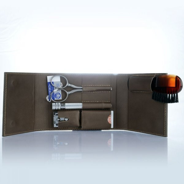 Představujeme vám holicí soupravu DOVO / MERKUR Solingen 575 056 - dokonalou kombinaci elegance, praktičnosti a kvality pro moderního muže, který hledá nejlepší zážitek z holení a péče o vousy a obočí i na cestách.