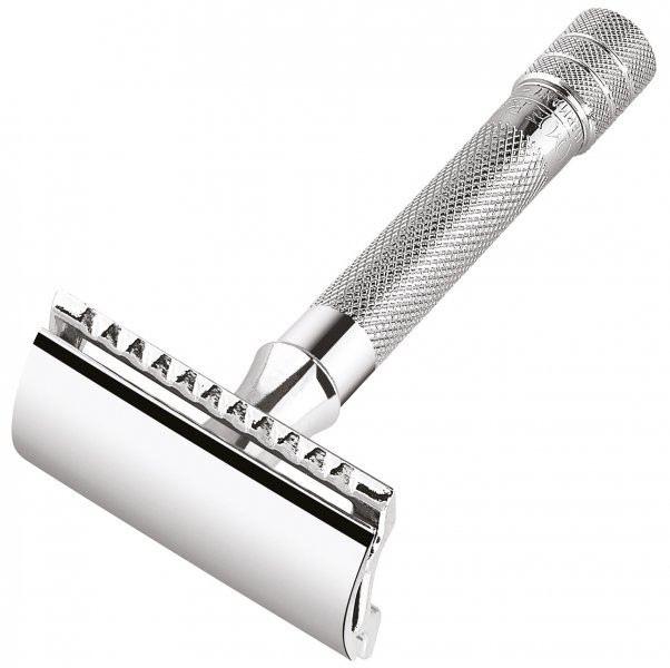 Tento celokovový strojek je chromovaný a určený pro klasické žiletky. Jeho šroubovací držadlo zajišťuje pohodlné a pevné držení při holení. Plná lišta je ideální pro každodenní holení a dokonale oholí vaše vousy nebo bradu.